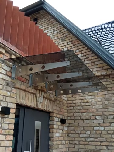 Mūsų stikliniai stogeliai gaminami iš grūdinto arba laminuoto stiklo, kuris yra atsparus smūgiams, įbrėžimams ir nepalankioms oro sąlygoms. Stogelio konstrukcijai naudojamas aukštos kokybės nerūdijantis plienas arba aliuminis, todėl stogeliai išlieka patvarūs ir ilgaamžiai.Elegantiškas dizainas ir pritaikymas